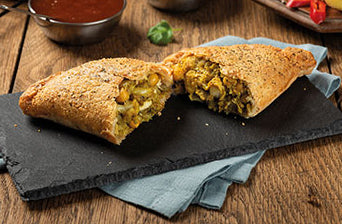 283g Medium size uncooked frozen pasty comprising of sliced potato, mixed vegetables, spices, and seasoning encased in a D-shaped, hand crimped edge vegetable pastry.